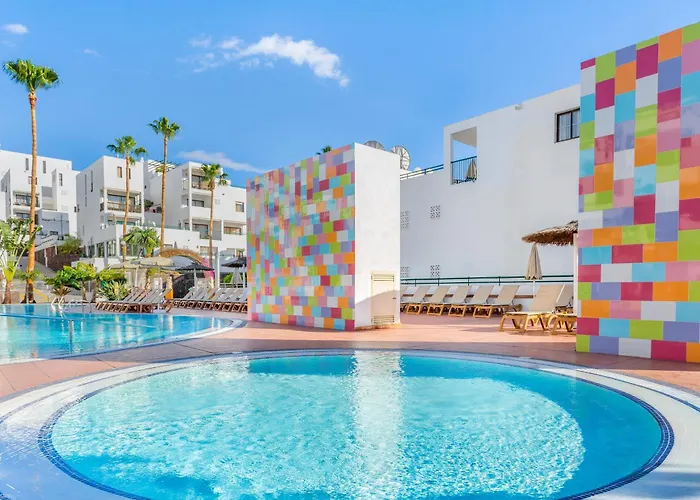 The hotel features two sparkling pools, a fitness center, and a dedicated children's playground, ideal for family activities. Nearby beaches include Fañabé Beach and Puerto Colón Beach, which offer water sports such as deep-sea fishing and stand-up paddling.