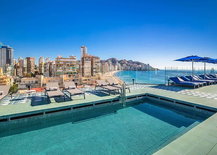 Barcelo Benidorm Beach - Adults Recommended is a 4-star hotel offering an outdoor pool with panoramic views, a rooftop bar, and a buffet restaurant specializing in Mediterranean cuisine. It is designed exclusively for adults, providing a retreat in close proximity to cultural attractions and local shops.