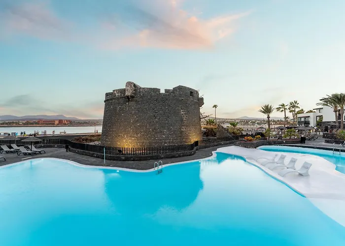 Barceló Fuerteventura Castillo offers a beachfront experience with its modern amenities and expansive pool area. This 4-star hotel is ideal for families and water sports enthusiasts, featuring renovated accommodations and a variety of dining options.