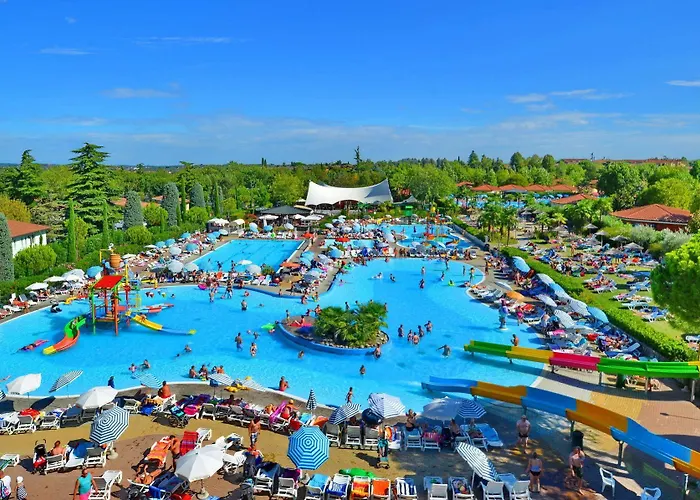Camping Bella Italia offers 4-star accommodations with a variety of family-friendly amenities including five swimming pools and multiple dining options. The campsite provides direct access to Lake Garda alongside extensive recreational activities. It has a Booking.com rating of 7.9/10.