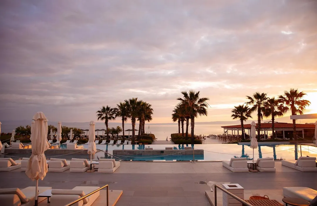 Domes Noruz Kassandra, Halkidiki - Adults Only is a 5-star Hanioti hotel known for its luxurious atmosphere and modern amenities. Guests can enjoy a stunning beach location, a variety of dining options, and a wellness spa.