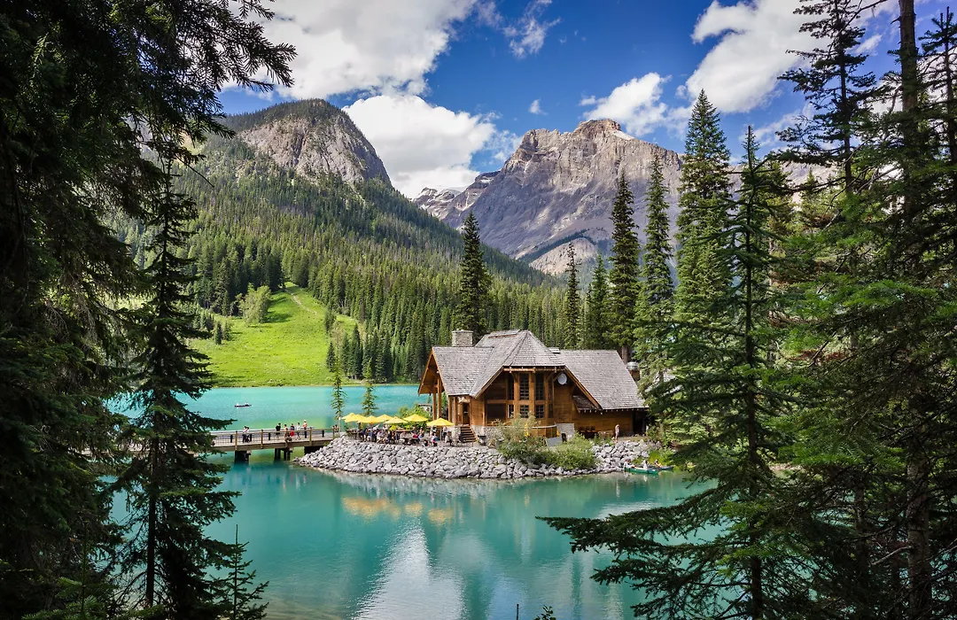 Emerald Lake Lodge, a 4-star hotel with an 8.4/10 rating, provides rustic accommodations and award-winning dining on the shores of Emerald Lake in Yoho National Park. This property features 24 cabin-style buildings, hand-hewn timber construction, and is designed to immerse guests in nature.
