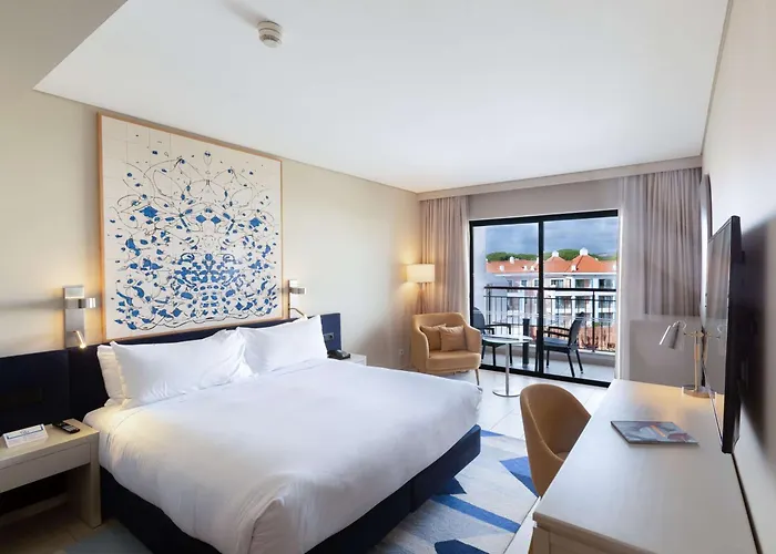 Rooms at Hilton Vilamoura include flat-screen TVs and spacious balconies with views of the resort's pools or golf courses. The hotel offers family suites and apartments, catering to different occupancy needs.