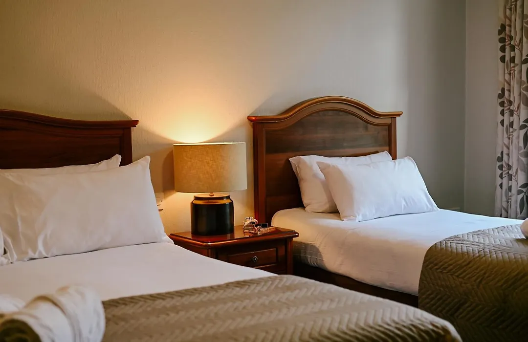Rooms at Abbey Court include standard double and twin options, as well as spacious family rooms designed for comfort. Each room is equipped with tea and coffee making facilities, Wi-Fi, and en-suite bathroom amenities. Many rooms overlook the hotel's award-winning rose gardens.
