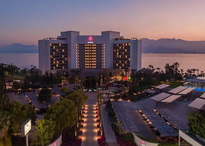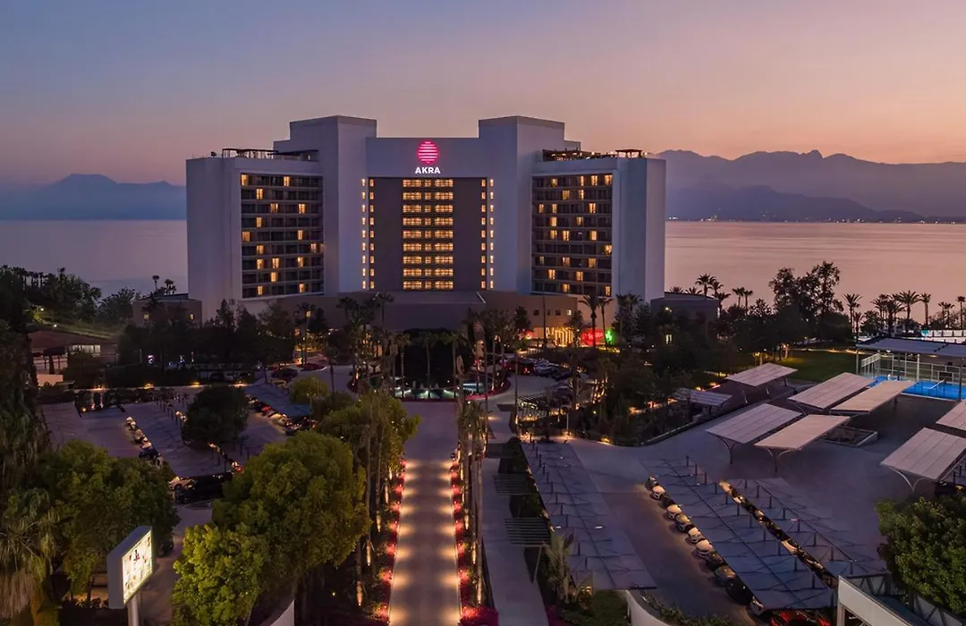 Akra Antalya, a 5-star hotel with a 9.1/10 Booking.com rating, is distinguished by its luxurious amenities and stunning Mediterranean views. The resort offers a private beach, multiple swimming pools, and a wellness center, drawing families, honeymooners, and event attendees.