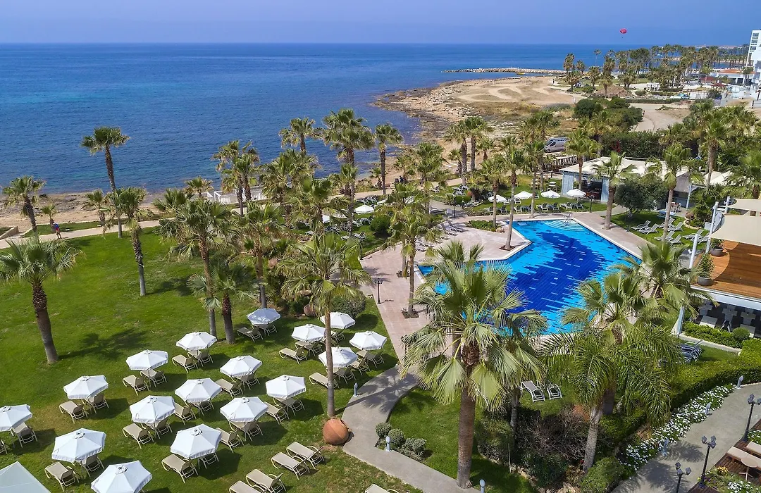 Aquamare Beach Hotel & Spa provides services such as 24-hour reception, medical services on call, and car rental assistance. Nearby local attractions include Luna Park (0.5 km), Paphos Harbour (3 km), and Agioi Anargyroi Church (3 km), with public transportation accessible via local bus stops within walking distance.