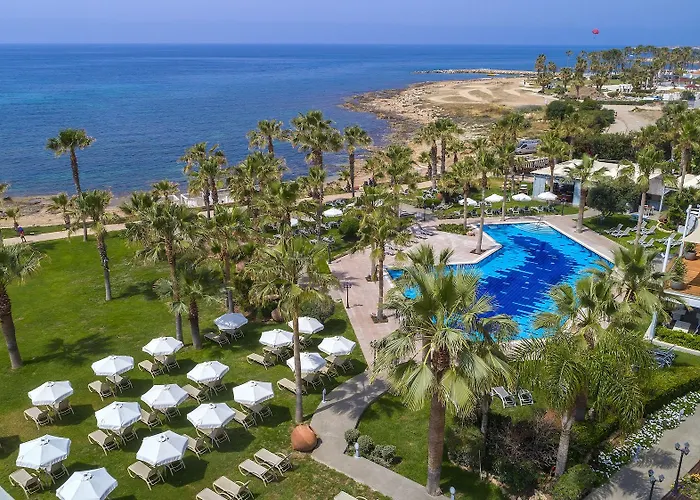 Leisure amenities feature the L'Aqua Spa with various treatments, an Aquamare Fitness Center with modern equipment, and access to multiple swimming pools, including a children's pool. The Dolphin Kids Club provides daily activities for younger guests, making this Geroskipou hotel family-friendly.