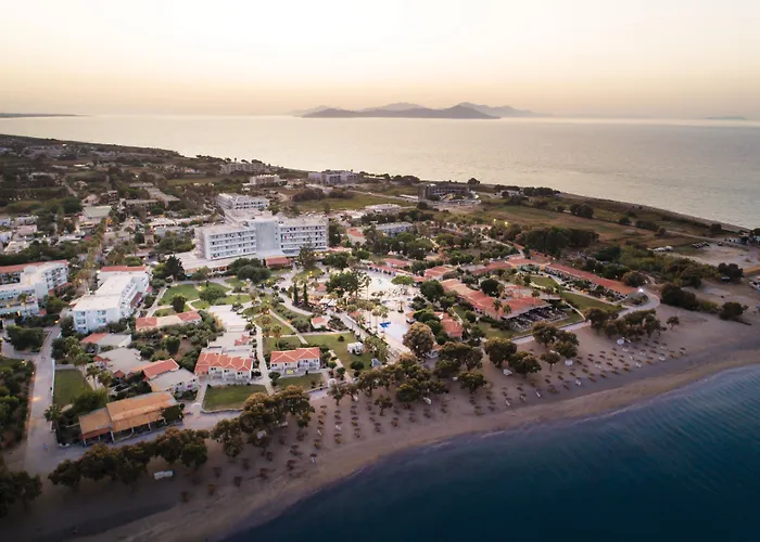 Atlantis Hotel, a 4-star Lambi (Kos) hotel, features lush gardens and a sandy beach with Blue Flag certification. The property provides a variety of amenities including spacious accommodations, a main restaurant, bars, and an entertainment program for families.