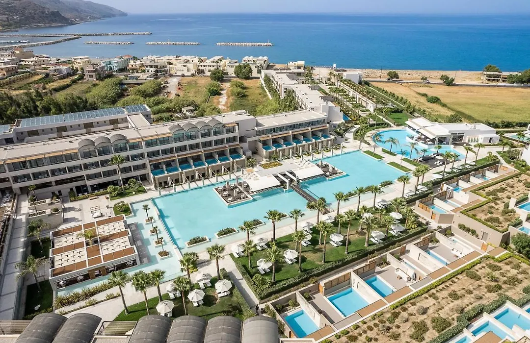 Avra Imperial Hotel, a 5-star property rated 8.5/10 on Booking.com, features unique architectural design inspired by ancient Minoan palaces and a variety of high-end amenities. Guests can enjoy the exclusive APIVITA Spa, six restaurants, and multiple swimming pools. This Kolymbari hotel offers a blend of luxury and relaxation by the beach.