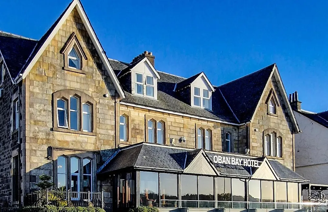Oban Bay Hotel, a 4-star pet-friendly hotel, features stunning views across Oban Bay and offers an array of indulgent spa treatments. Guests can enjoy a Thermal Experience with an outdoor hot tub and oak barrel sauna, as well as fine dining in the award-winning Grill Room. A short walk leads to local attractions and nearby beaches.