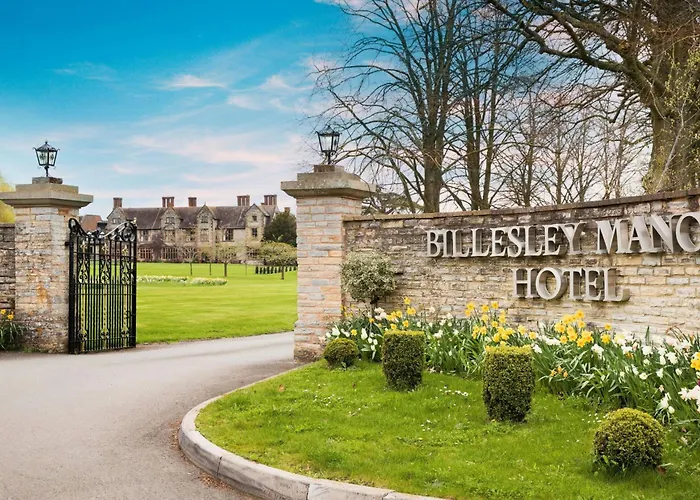 Billesley Manor Hotel & Spa, A Tribute Portfolio Hotel, rated 8.4/10, features a spa, fine dining, and scenic 4.5 hectares of gardens. This 4-star Wilmcote hotel offers a historic setting with proximity to Shakespeare's birthplace.