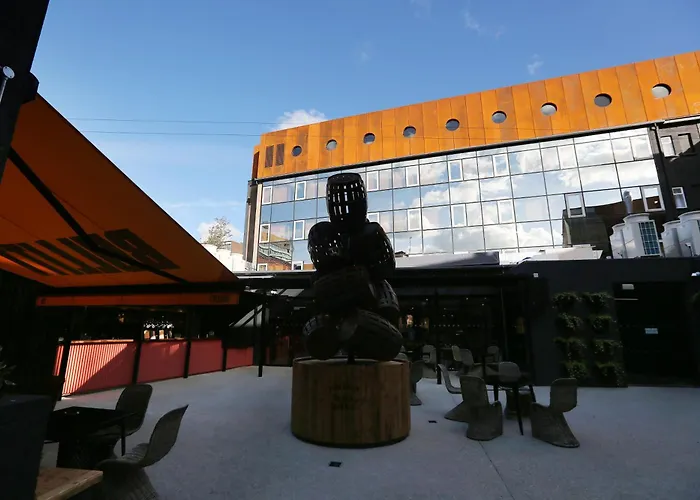 Amenities include a cozy lobby for relaxation, a courtyard for casual dining, and bike rentals for exploring the city. George Best Airport is 5.5 km away, easily accessible by taxi or bus.