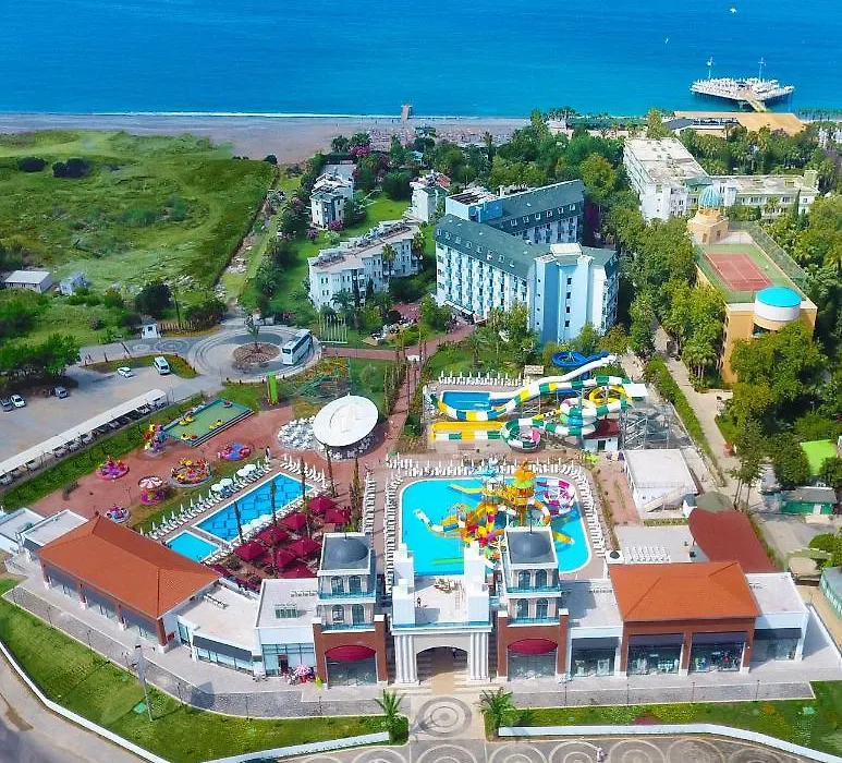 Club Aqua Plaza is a 4-star resort-styled hotel featuring a seasonal outdoor swimming pool and a private beach set in lush gardens. The hotel offers comprehensive amenities including a restaurant, children's playground, and fitness facilities. This Alanya hotel provides all meals and drinks from local brands.