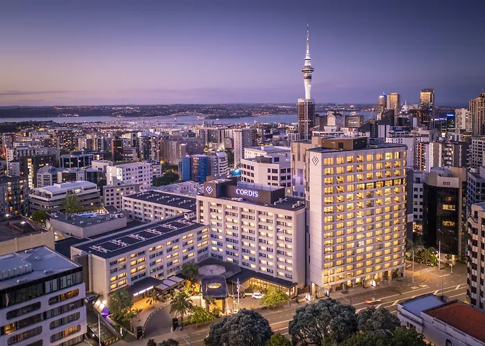 Cordis, Auckland By Langham Hospitality Group is a 5-star hotel featuring 640 modern rooms and suites equipped with high-tech conveniences. Additional amenities include a heated rooftop pool, Chuan Spa, and 18 versatile event venues. Rated 8.7/10 on Booking.com, this contemporary Auckland hotel is situated in an area known for its trendy boutiques and fashion outlets.