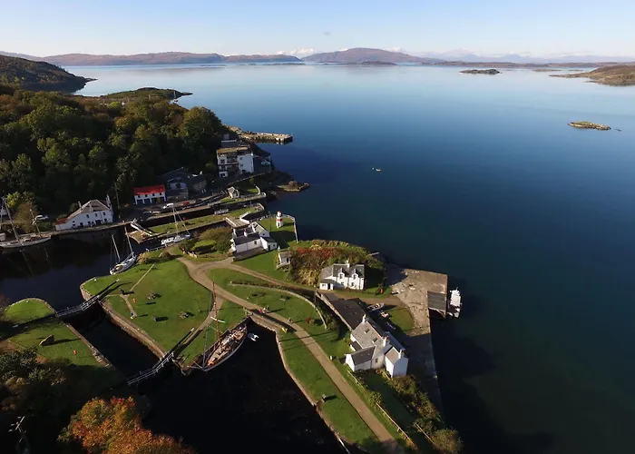 Crinan Hotel offers an artistic experience with breathtaking views over Loch Crinan, combined with a commitment to locally sourced seafood. This 4-star hotel features a restaurant, a bar, and a charming coffee shop, providing a uniquely welcoming atmosphere in Crinan.