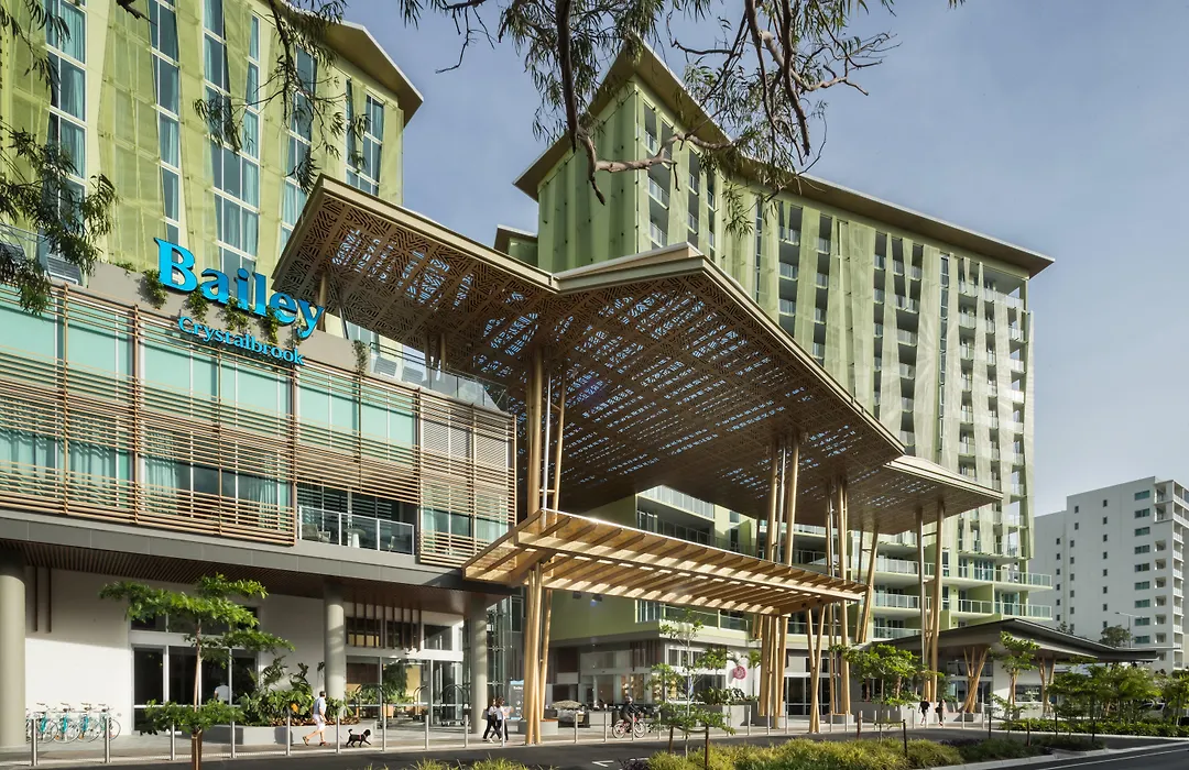 Crystalbrook Bailey is a 5-star Cairns hotel offering luxurious one, two, and three-bedroom apartments with modern amenities and vibrant dining options. Facilities include two swimming pools, art spaces showcasing local artists, and a 24-hour gym.