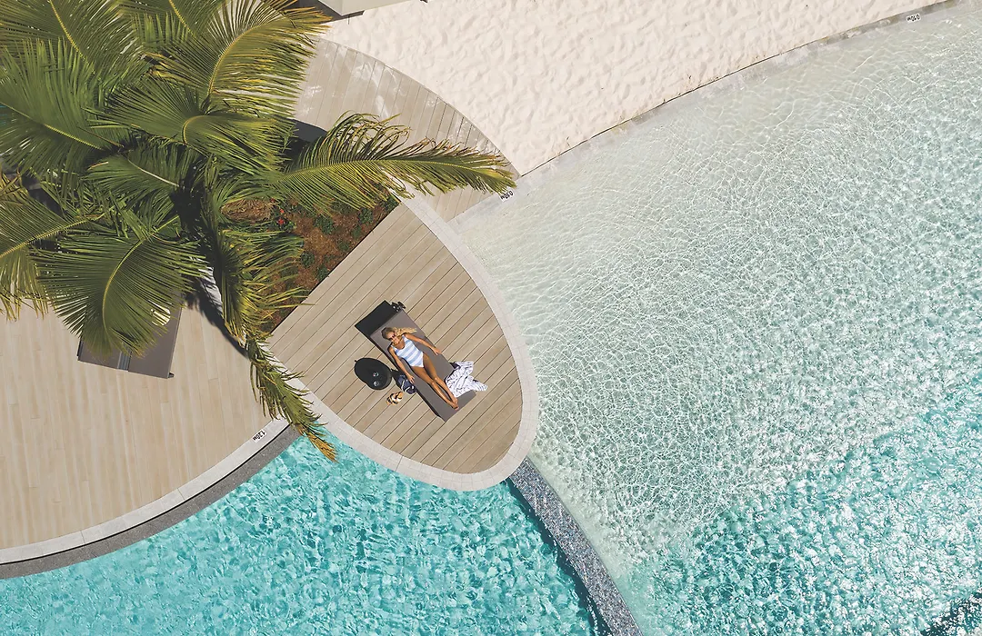 Rooms at Crystalbrook Riley are stylishly designed, featuring modern amenities such as Apple iPad control centers, 55-inch Smart TVs, rainforest shower heads, and Nespresso coffee machines. The deluxe room boasts spectacular views of the Coral Sea and offers spacious balconies to enjoy the surroundings.