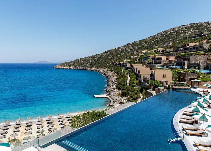Daios Cove, a 5-star luxury hotel, offers breathtaking views of the Aegean Sea and provides easy access to its private beach. This resort includes a GOCO Spa, fitness center, and an expansive saltwater infinity pool among other upscale amenities.