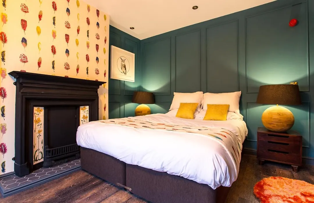 Rooms at Eagle and Child Ramsbottom include five boutique options, all en-suite with complimentary water, mini-fridges, and widescreen TVs. The suites, Tawny Owl and Barn Owl, offer Juliette balconies with views of Peel Tower and the Lancashire moors. A dog-friendly room, Eagle Owl, is also available.