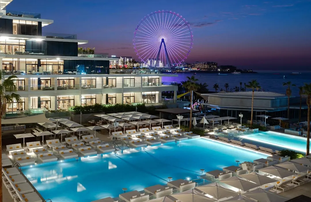 Leisure facilities include an outdoor swimming pool, fitness center, and wellness services such as hammam and massage treatments. A hot tub and nightclub are also present, catering to guests looking for relaxation and entertainment.