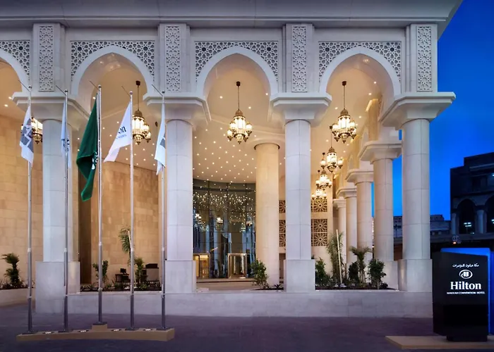Hilton Hotel & Convention Jabal Omar Makkah is a 5-star hotel rated 8.4/10 on Booking.com, featuring elegant accommodations with elevated views of the Sacred Mosque. This Mecca hotel offers extensive meeting facilities, multiple dining options, and complimentary WiFi throughout the property.