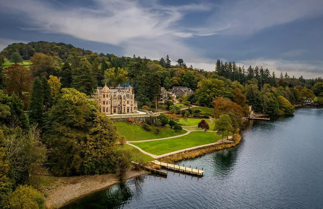 Langdale Chase Hotel, a 5-star property with a 9.3/10 rating, offers stunning views of Lake Windermere. The Victorian villa features a two AA Rosette awarded restaurant, a private beach, and various leisure activities.
