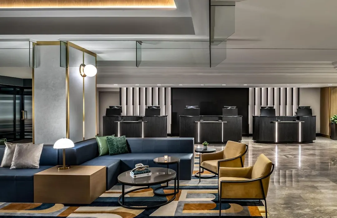 The hotel features newly renovated rooms designed to maximize comfort and productivity. Each room includes a flat-screen TV, work desk, and tea and coffee facilities, with some offering access to the private Club Lounge, which provides complimentary breakfast and evening appetizers.