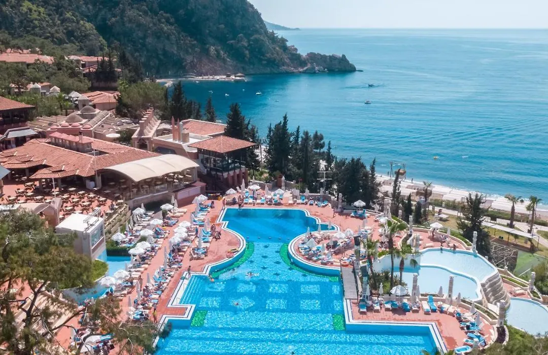 Liberty Lykia, a 5-star property with a 9.3/10 rating from Booking.com, is set in a vast 162 hectare landscape offering a private beach and luxurious amenities suitable for families. Unique features include a children's paradise and various dining options across multiple restaurants.