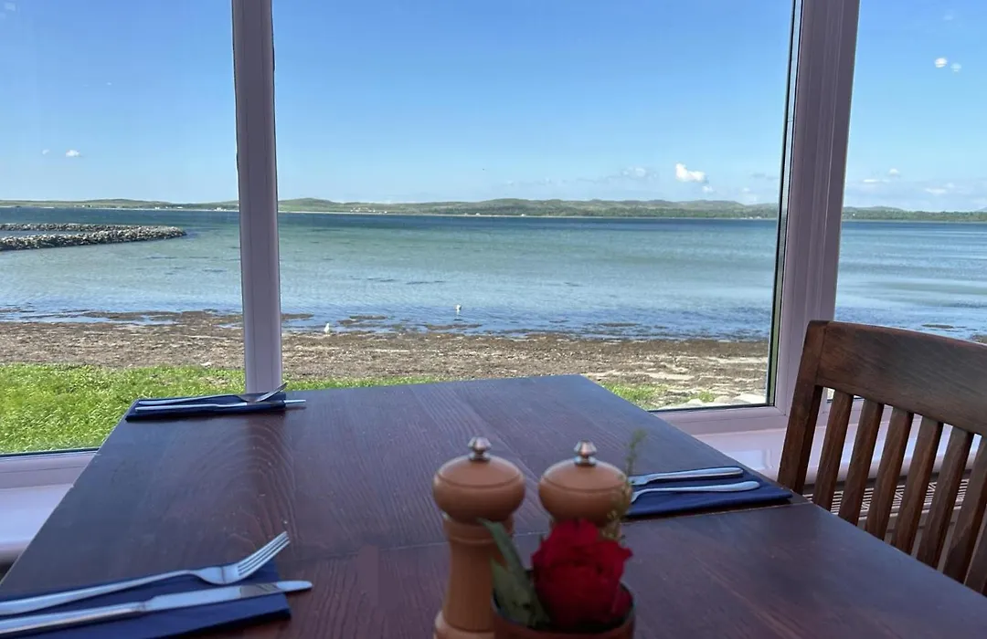 The hotel's restaurant focuses on local seafood, with dishes like Islay scallops, fresh langoustines, and locally sourced shellfish. The lounge bar is home to an extensive collection of over 200 Islay whiskies, along with various local gins and beers.