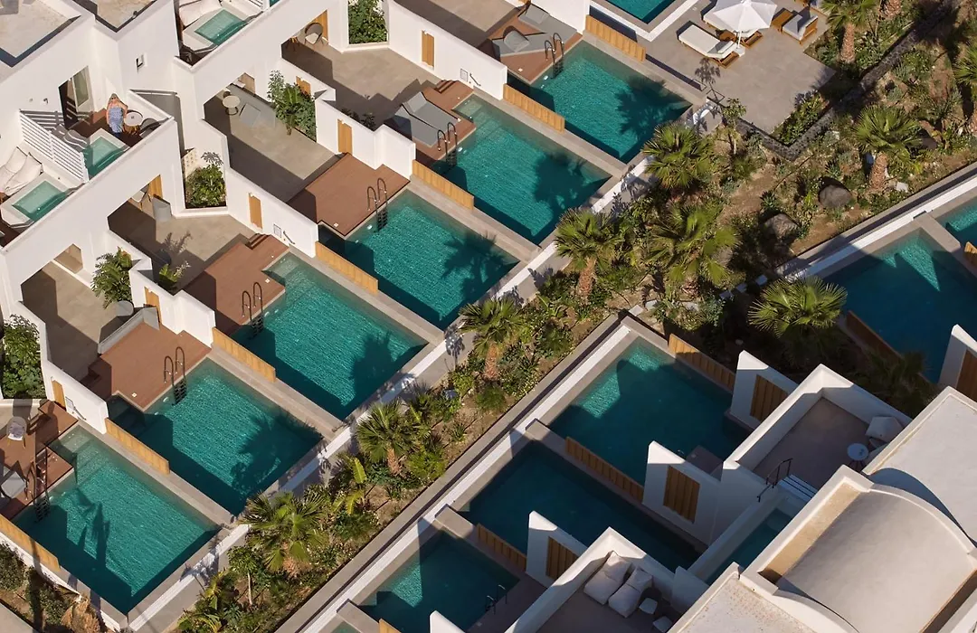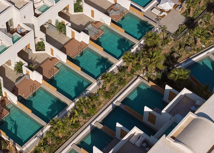 Meltemi Blu - Adults Only is a 5-star hotel in Perissa featuring a seasonal outdoor swimming pool and a fitness centre. Guests can enjoy free WiFi and a private beach area. The hotel has a Booking.com rating of 9.2/10.