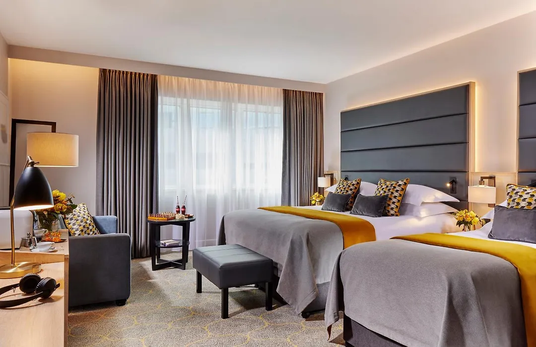 The Mespil Hotel features 260 spacious non-smoking guest rooms equipped with a 47-inch Samsung TV, air conditioning, complimentary ritual toiletries, and high-speed Wi-Fi. Many rooms provide views of the Grand Canal. The hotel offers limited complimentary parking on a first-come, first-served basis.