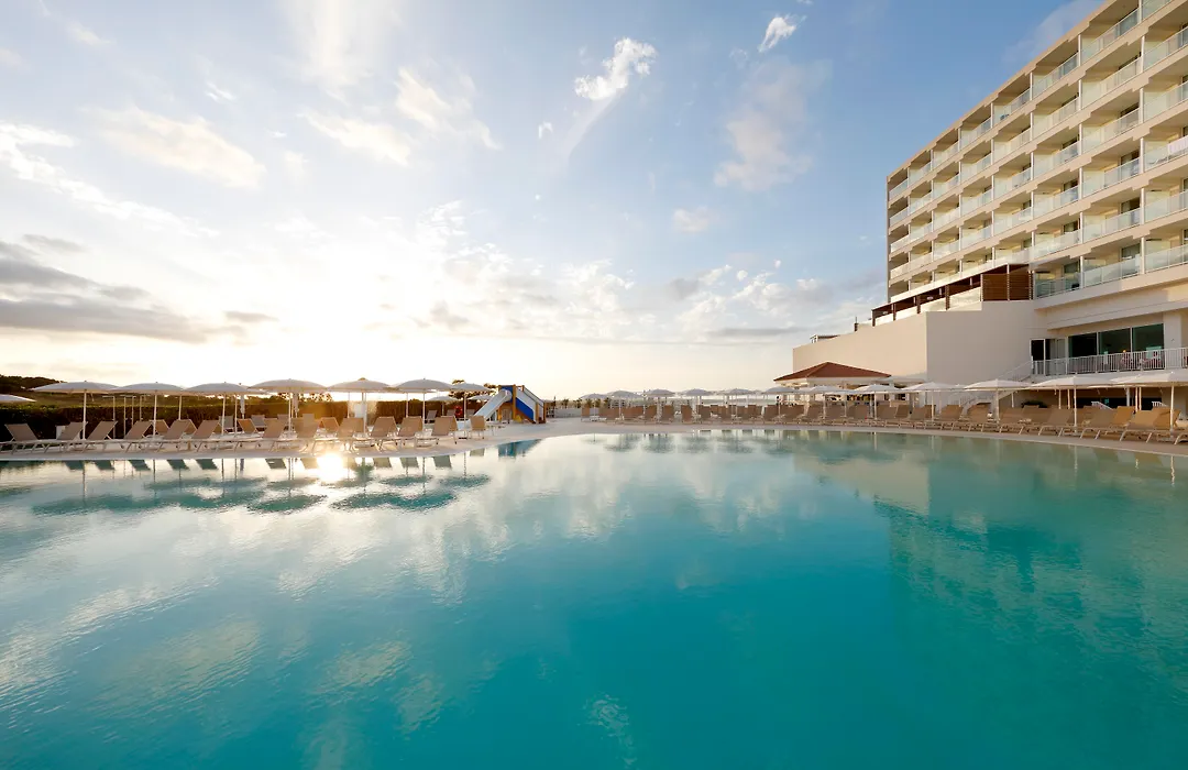 Rooms at Palladium Hotel Menorca include 264 modern accommodations with options for sea or pool views. Families can select spacious suites featuring extra-large beds and sofa beds, designed for comfort and convenience.