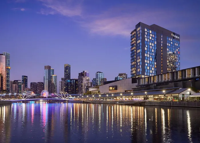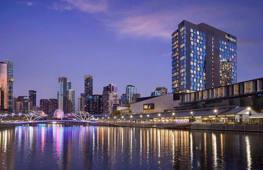 Pan Pacific Melbourne, a 5-star hotel rated 9.0/10 on Booking.com, offers luxurious accommodations with stylish interiors and stunning views of the city, Port Phillip Bay, or Yarra River. The hotel features a dedicated concierge team, direct internal access to the Melbourne Convention and Exhibition Centre, and modern amenities for business and leisure travelers.