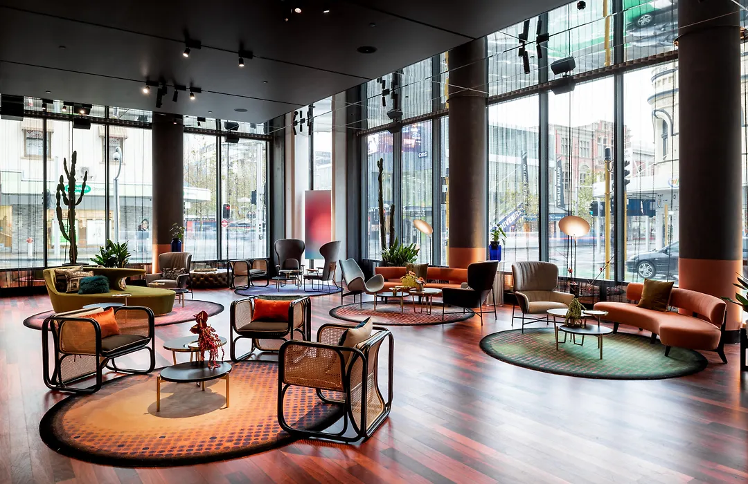 QT Perth, a 5-star designer hotel, offers a luxurious stay in Perth's CBD with a rooftop bar and eclectic dining options. The property is known for its contemporary design and caters to those who enjoy shopping and indulging in culinary experiences.
