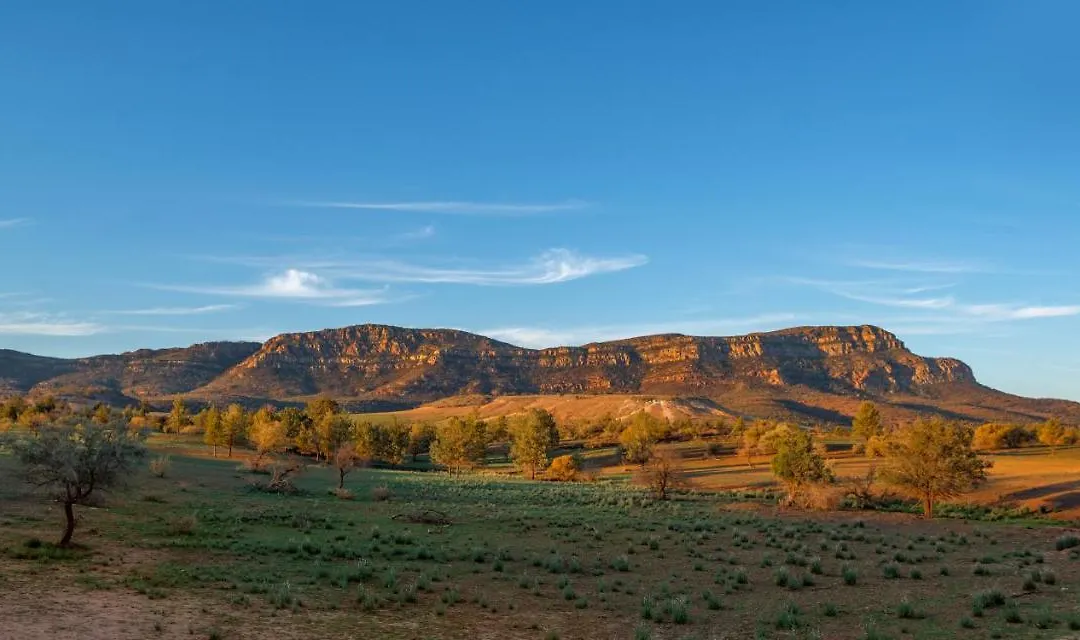 Rawnsley Park Station, a 4-star Flinders Ranges hotel rated 9.1/10 on Booking.com, features eco-friendly accommodations with stunning views of Wilpena Pound. The property offers a range of unique experiences, including woolshed tours and a lamb tasting dinner.