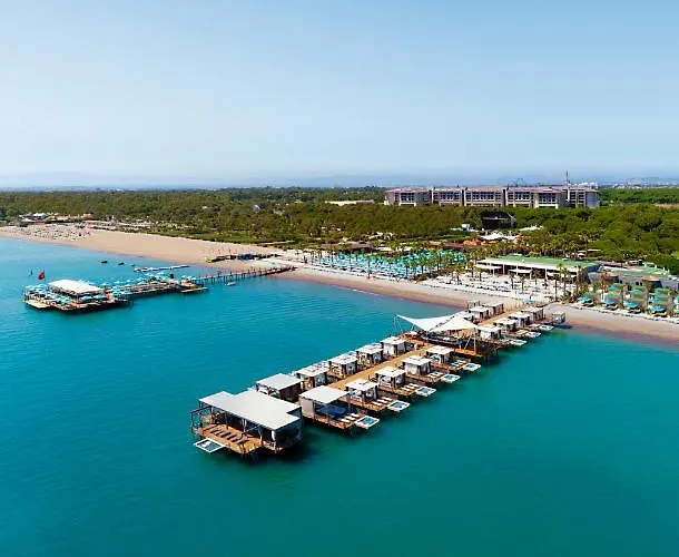 Regnum Carya, a 5-star Belek hotel rated 8.7/10 on Booking.com, features a luxury accommodation experience with an expansive aqua park and numerous entertainment options. Guests can access a spa, several restaurants, and golf courses, enhancing their stay in this premium setting.