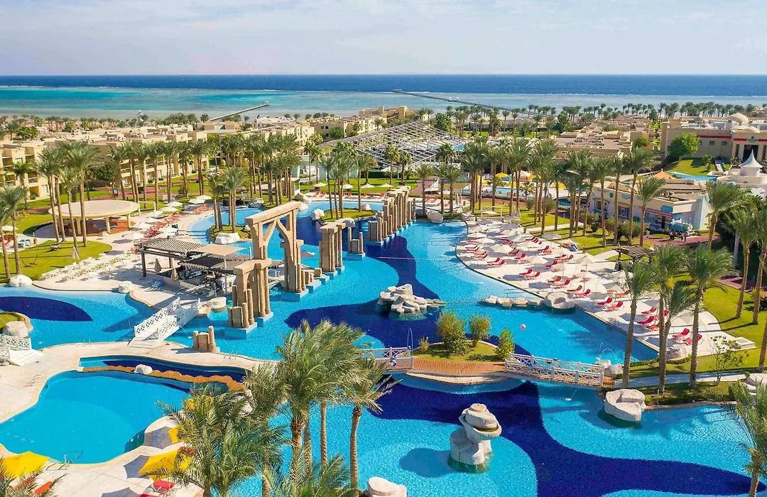 Rixos Premium Seagate (5-star) offers a luxurious retreat overlooking the Red Sea, featuring a variety of amenities such as a private beach, an expansive water park, and numerous dining options. The hotel is well-suited for families, with a dedicated kids club and a wellness spa.