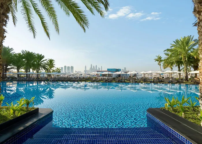 Rixos The Palm Hotel & Suites offers a luxurious stay with panoramic views of the Arabian Gulf and Dubai's skyline. This 5-star Dubai hotel features spacious accommodations, multiple dining options, and a private beach. The resort provides an extensive array of family-friendly amenities, including a kids' club and wellness facilities.