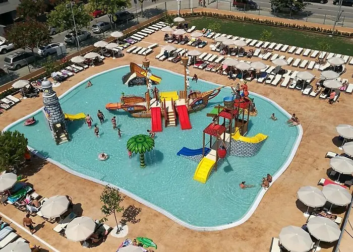 Hotel Sorra Daurada Splash offers an extensive water park, three outdoor swimming pools, and family-focused amenities in a 4-star setting. The property features a buffet restaurant serving all meals, a bar-café with an outdoor terrace, and engaging entertainment programs. This Malgrat de Mar hotel is situated just 50 meters from the beach.