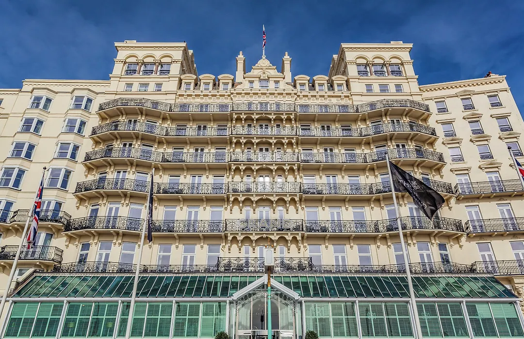 The Grand Brighton, a 5-star hotel with an 8.8/10 Booking.com rating, features luxurious sea-view bedrooms and an award-winning afternoon tea experience. Notable facilities include a spa set to launch soon, multiple dining options, and an impressive bar stocked with local gems.