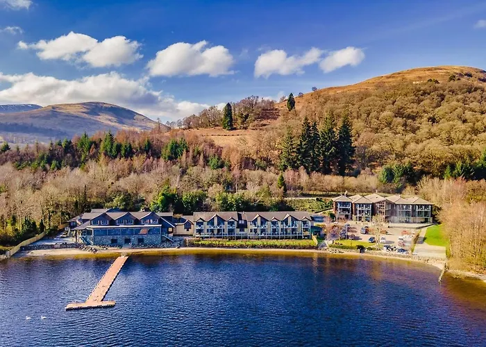 The Lodge On Loch Lomond Hotel offers spectacular waterfront views and exquisite dining in Luss, featuring 48 guest rooms and a Thermal Suite at the newly opened AmberRose Spa. This 4-star hotel, rated 8.9/10 on Booking.com, caters to both leisure and business guests with conference facilities and adventure activities.