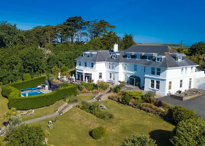 The St Enodoc Hotel is a 4-star boutique hotel in Wadebridge, featuring views of the Camel Estuary and a focus on contemporary design with bright colors and artwork. Amenities include a brasserie, a spa, and access to nearby golf courses, making it suitable for guests seeking a coastal retreat.