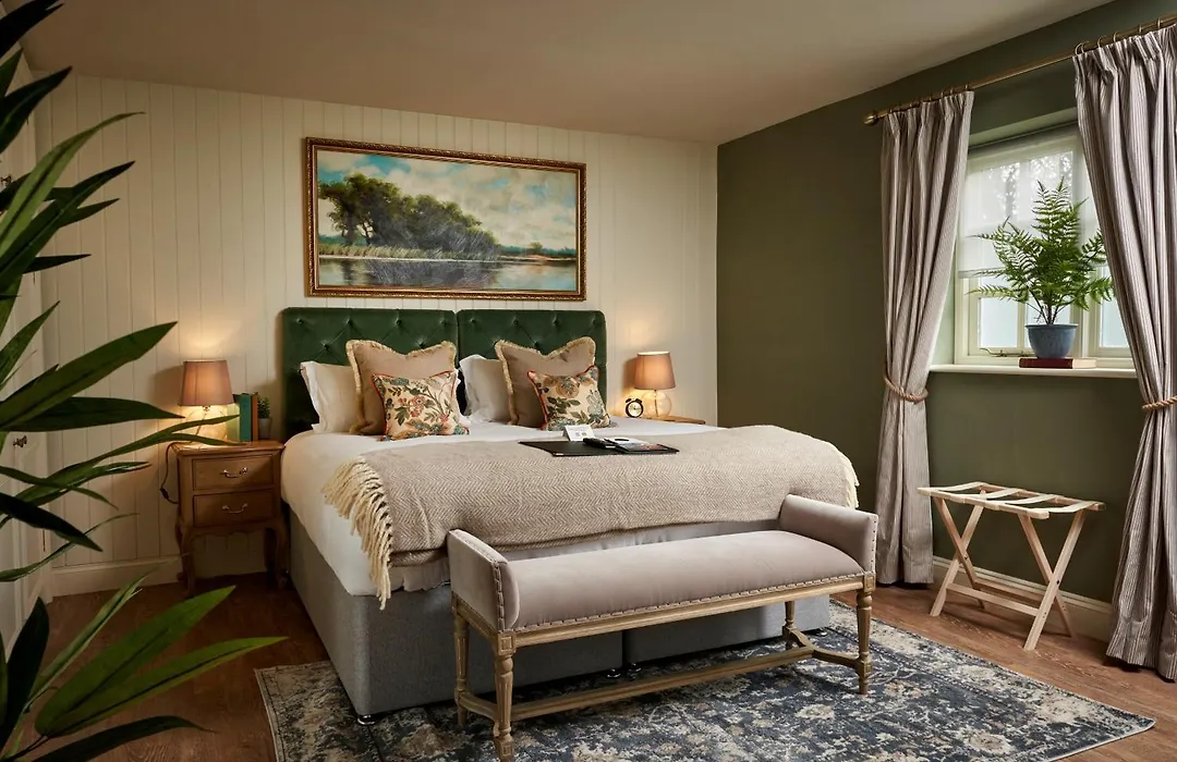 The Trout At Tadpole Bridge offers six recently refurbished rooms named after fishing rods, equipped with vintage furnishings, king-size beds, rain showers or claw-foot tubs, and Bramley toiletries. Three rooms are pet-friendly with a £20 charge, accommodating dogs with beds and bowls provided.