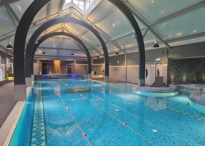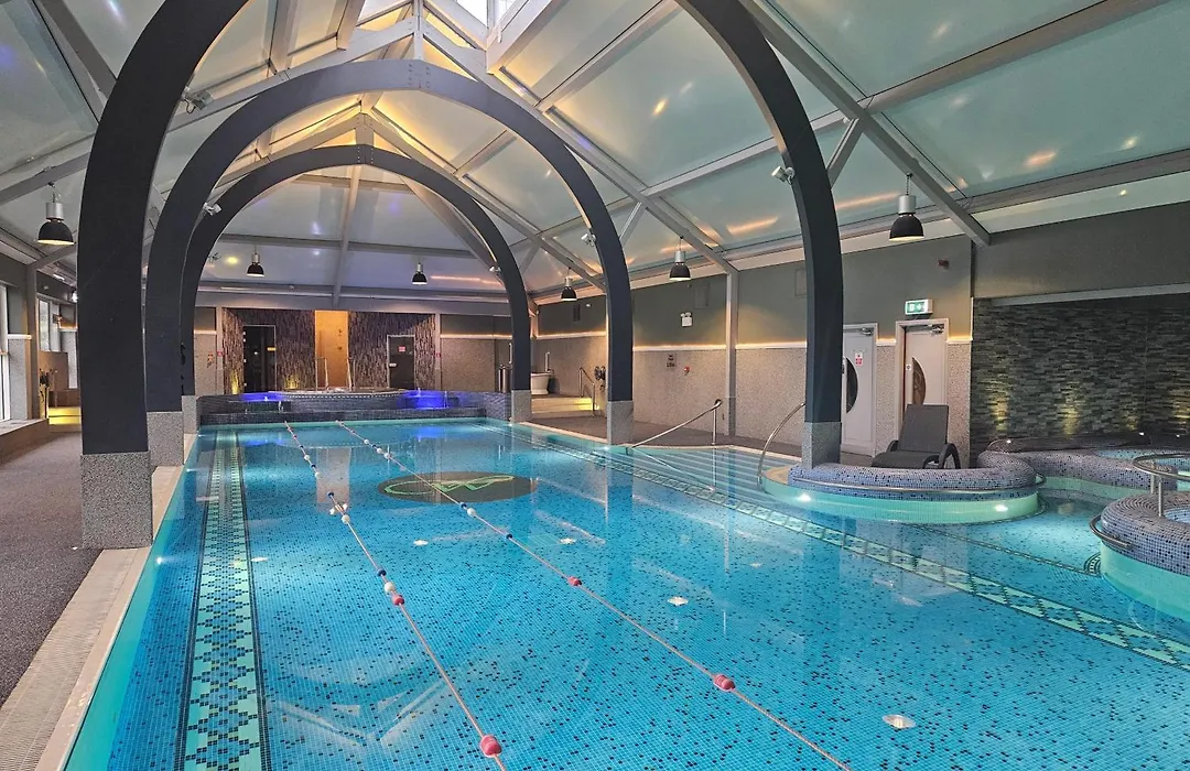 The Leisure Club includes a 20m swimming pool, hydrotherapy area, sauna, and a fitness center. A children's pool with water features is also available, making it suitable for family visits.