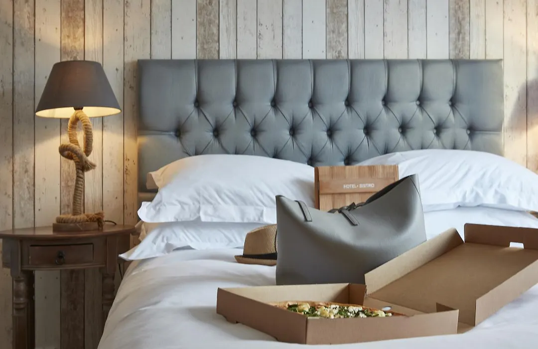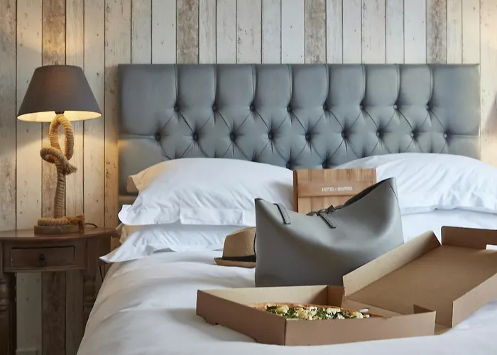 The bistro offers a menu focused on local fish and an all-you-can-eat breakfast including sausages, bacon, and eggs. Guests can enjoy dining al fresco on the outdoor deck.