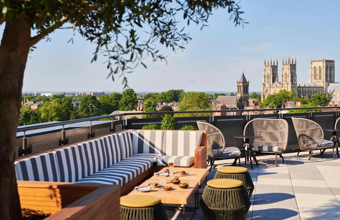 Malmaison York, a 4-star hotel with a rating of 8.3/10 on Booking.com, features modern interior design and offers amenities such as free WiFi and room service. Its rooftop bar provides panoramic views alongside its restaurant serving French-inspired cuisine.