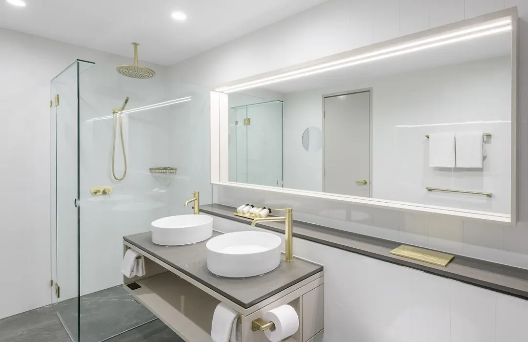 Rooms at Meriton Suites Surfers Paradise include 1, 2, and 3-bedroom options with king-zipped beds, air conditioning, and full kitchen facilities. Each suite features a private balcony, a washer/dryer, Smart TV with digital channels, and exclusive bath products.