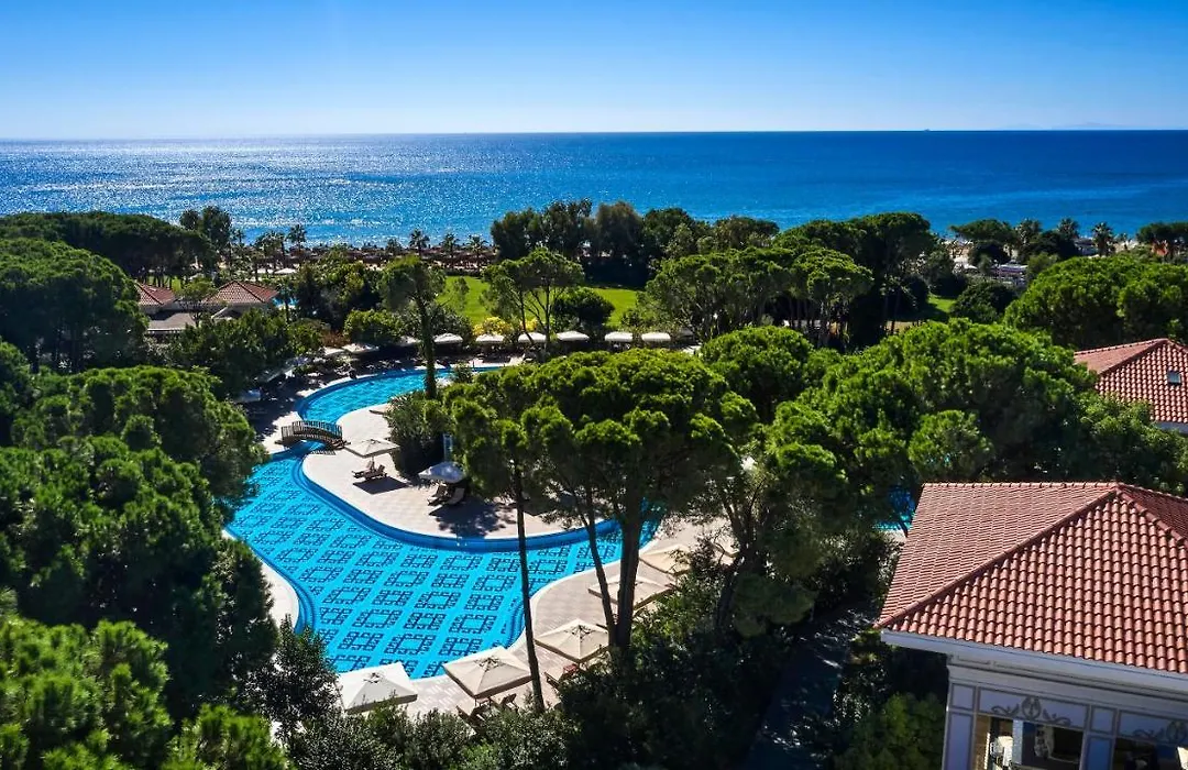 Dining options include an a la carte restaurant and an open buffet serving Turkish and world cuisines. Guests can savor fresh flavors from master chefs, along with various dessert options. Nearby landmarks include the ancient city of Side, just 2 km away.