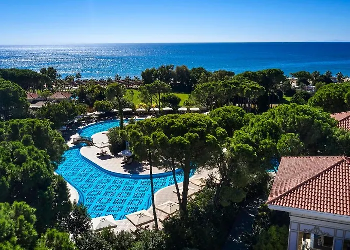 Ali Bey Resort Sorgun offers a family-friendly 5-star experience with modern amenities, including a large waterpark and extensive tennis facilities. The hotel has a rating of 8.7/10 on Booking.com. Guests can enjoy Turkish and international cuisine, various pools, and wellness services.