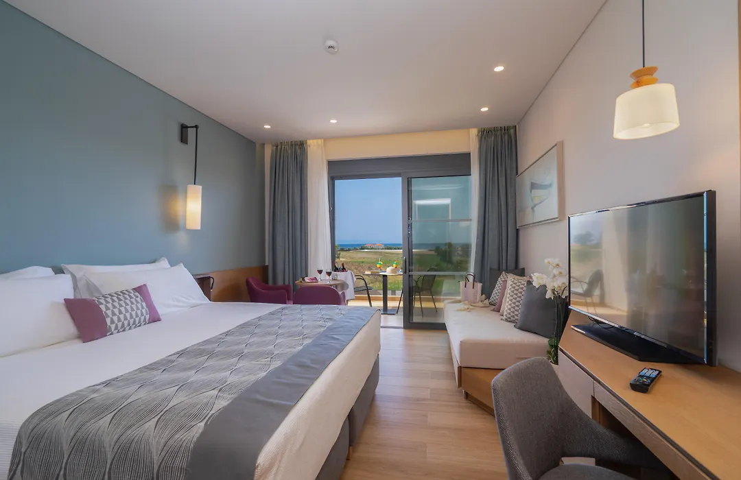 Rooms at Apollonion Asterias Resort And Spa feature air conditioning, satellite TV, and en suite bathrooms with upscale amenities. Many rooms include minibars, seating areas, and private terraces, some offering pool views.